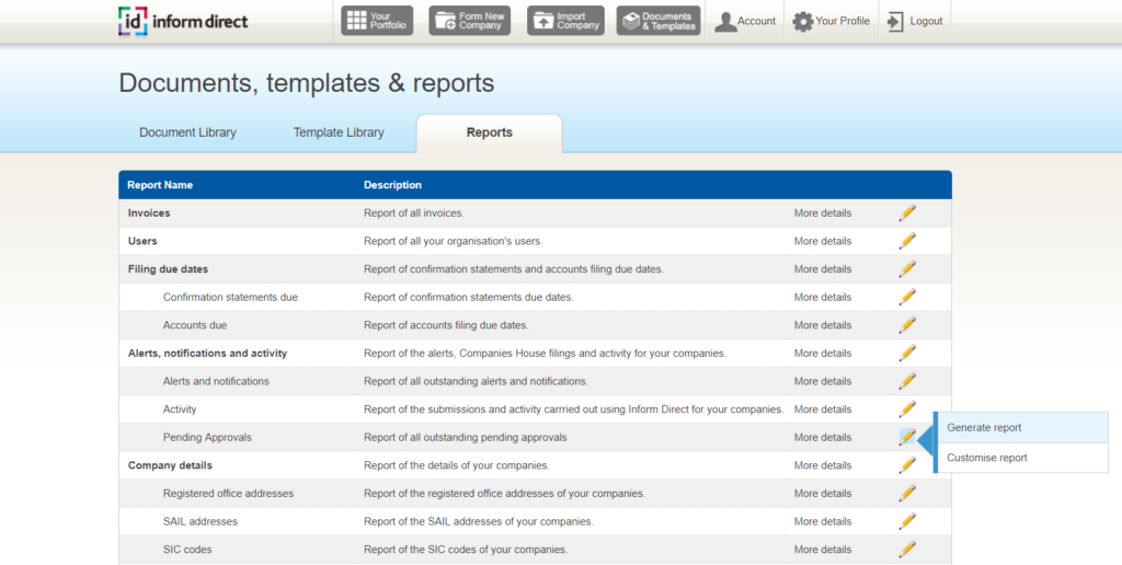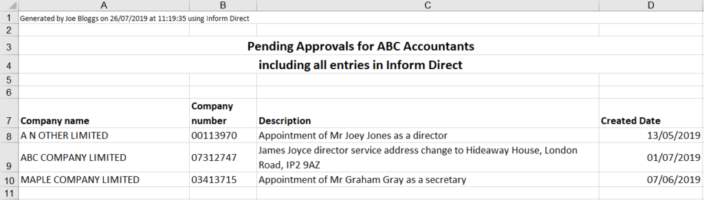 To help keep track of outstanding approvals you will now be able to receive email alerts and generate a report listing all outstanding approvals within your portfolio (including pending approvals for confirmation statements and dormant company accounts).