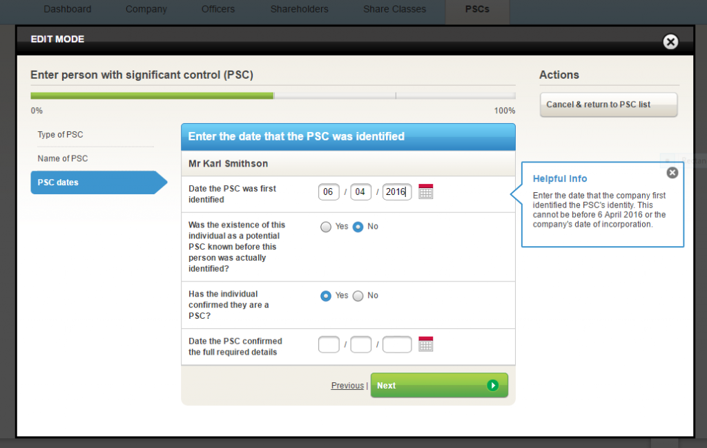 In Inform Direct you’re also able to reuse information you’ve already entered before. So if you’ve appointed someone as a director and then need to add them as a PSC, you won’t need to type in all their details again like you would at Companies House. Similarly, you can reuse addresses when they’re used multiple times in a company. As well as saving you time, this also helps ensure your clients’ information is consistent on the public record.