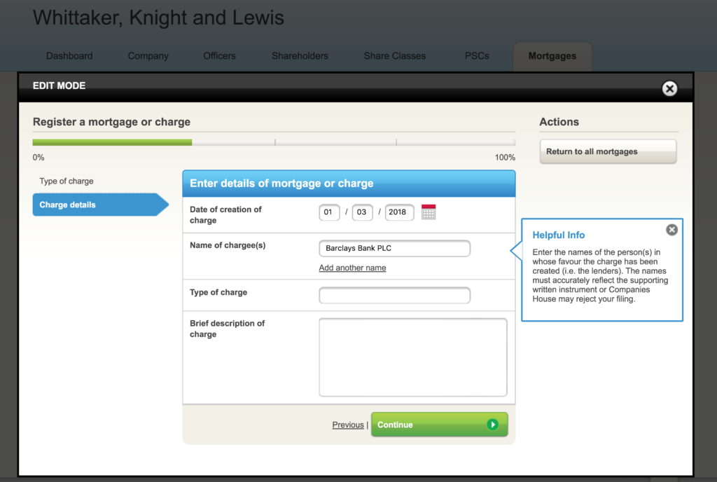 All the updates you make are reflected in your fully compliant register of mortgages and charges. Where details of historic mortgages are not electronically available from Companies House, you can add the details manually so you have everything in one place.