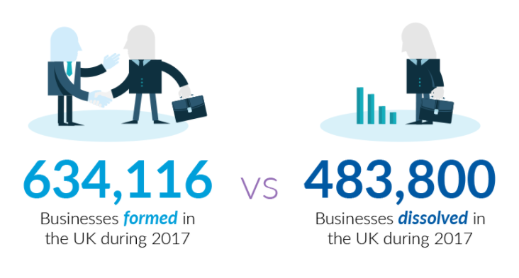 Based on data from Companies House and the Office of National Statistics, our study provides the most comprehensive picture of 2017 company formations and dissolutions across the UK.