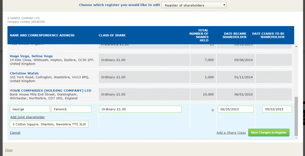Or, if you’d like to have a single set of printable registers that cover the whole life of the company, you can add historic transactions – share allotments, transfers etc. as well as details of former directors, secretaries and shareholders – directly into Inform Direct. A simple interface means it’s quick and easy to add in as many records as you need to, and you’ll then have everything consolidated in one place. When you view or print your registers, old and new information is seamlessly and beautifully integrated together.